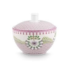 Este açucareiro faz parte da nossa coleção Lily & Lotus. O açucareiro é decorado com pequenas flores gráficas. As flores e graciosas samambaias são colocadas simetricamente, dando a este açucareiro um toque moderno. Lily & Lotus é a primeira louça da coleção Pip Studio que pode ser lavada na máquina de lavar louça, no micro-ondas e no forno.