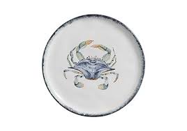 Jogo 6 Pratos Raso Atlântica Cerâmica Peixe Azul / Amarelo e Concha 28cm Scalla
